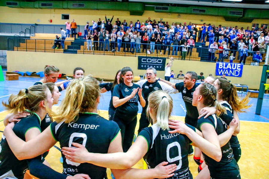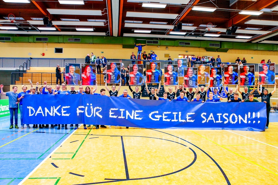 „Die 40 Punkte Marke haben wir zwar nicht ganz erreicht, aber im Volleyball langen auch 38 Punkte für den sicheren Verbleib in Liga Drei und Platz 5 am Ende. Das Spiel gegen Aasee zeigte auch über weite Strecken warum: Tolle Leistung, tolle Atmosphäre und jede Menge Dankeschöns. Wofür aber viele Worte verlieren, wenn man so einen tollen Fotografen wie Ralf Litera hat?!“, sagt Coach Julian Schwallow. Deshalb diesmal eine große Collage: