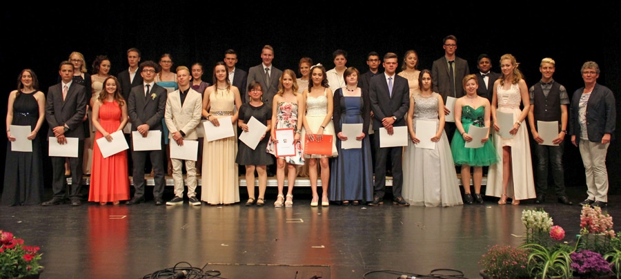 Als Jahrgangsbeste wurden Lea-Sophie Blum, Julia Pelkner und Anastasia Bondarenko auf der Bühne geehrt.
