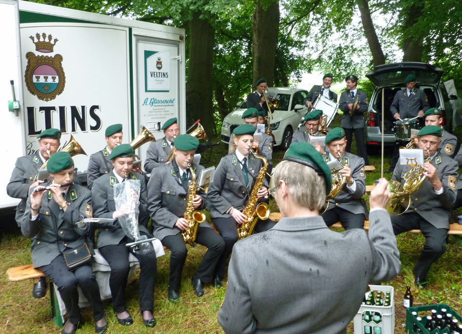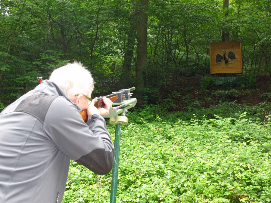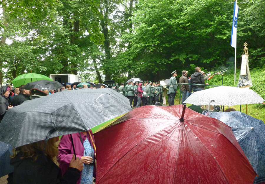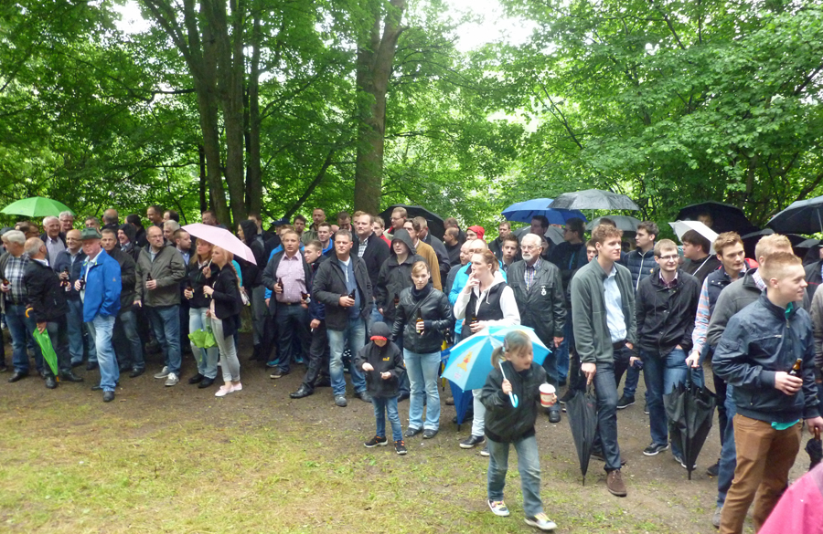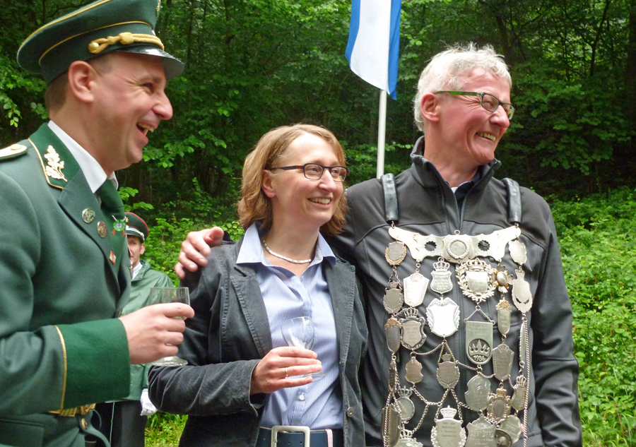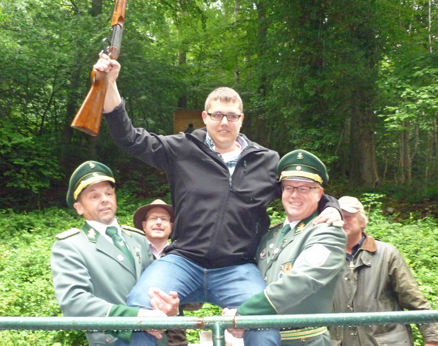 Ein noch län­ge­res Schie­ßen als am Mon­tag um die Königs­wür­de hat­te es bereits am Sams­tag gege­ben, als die Wes­ten­fel­der ihren neu­en Kai­ser aus­schos­sen. Erst im 244. Schuß, als bereits die Muni­ti­on aus­zu­ge­hen droh­te, been­de­te Achim Kan­te den fast zwei­stün­di­gen Kri­mi, an dem sich ein knap­pes Dut­zend ehe­ma­li­ger Köni­ge aktiv betei­lig­te. Achim Kan­te, der König von 1998 – und Geck von vor 25 Jah­ren – wird die nächs­ten fünf Jah­re mit Ehe­frau Chris­ta das Wes­ten­fel­der Kai­ser­paar stellen.