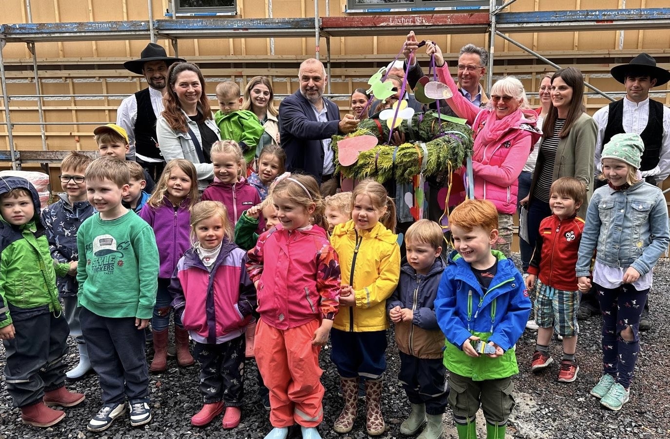 Arnsberg. Arnsberg begeht das zweite Kita-Richtfest innerhalb von nur fünf Wochen: Der Neubau der Kita Biberburg im Stadtteil Holzen ist weit vorangeschritten. Diesen Meilenstein hat die Stadt Arnsberg nun gemeinsam mit dem ausführenden Generalunternehmer Fa. Materio aus Soest, Vertreter:innen der Lokalpolitik und auch den Investoren, Erzieher:innen, Eltern und Kindern gefeiert.