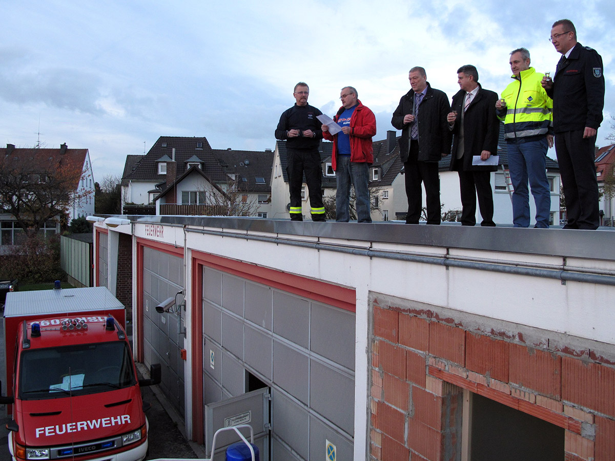 Thomas Bock, Mitglied der Geschäftsführung des Arnsberger Standorts von Reno De Medici dankte seinerseits den Feuerwehrangehörigen für ihren verlässlichen Einsatz zum Wohle der Bürgerinnen und Bürger aber auch des Unternehmens. Denn durch den auf dem eigenen Gelände befindlichen Feuerwehr-Stützpunkt ist eine schnelle und qualifizierte Hilfe in einem Schadensfall stets gewährleistet. Er zeigte sich zuver- sichtlich, dass das neue Gebäude zum Ende des Jahres seiner Bestimmung übergeben werden könne und dankte in diesem Zusammenhang auch dem ehemaligen Werksdirektor Manfred Stemmer, der dieses Projekt vor Jahren durch seine Initiative maßgeblich mit auf den Weg gebracht hat.