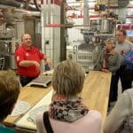 Max Lehnert, der sich im Namen der Gruppe für die freundliche und nette Aufnahme und die interessanten Informationen bedankte, zeichnete Charly Grote zur Erinnerung an den Besuch mit einer „Rote Socke“ aus.