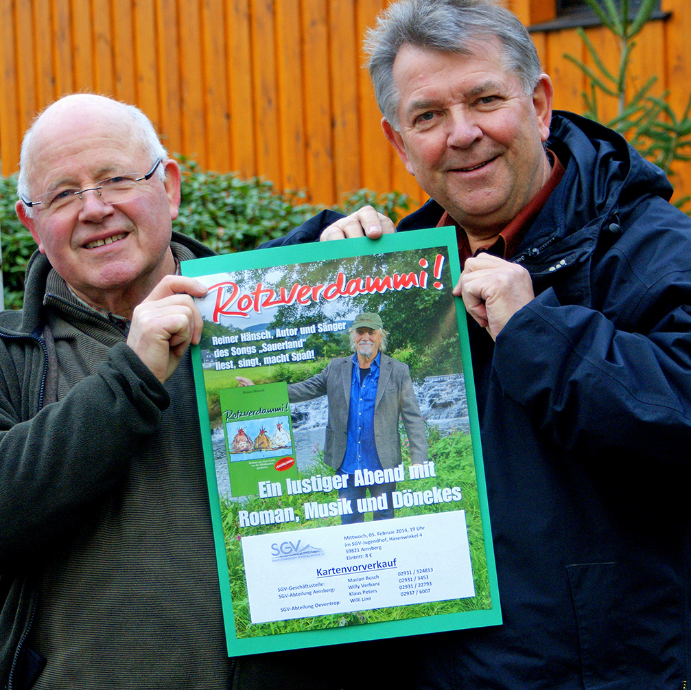 Arnsberg. Da haben die SGV-Abteilungen Oeventrop und Arnsberg offenbar einen Volltreffer gelandet. „Rotzverdammi“ – der amüsante Abend im SGV-Jugendhof mit dem Autor und Erzähler witziger und turbolenter Geschichten aus dem Sauerland, Reiner Hänsch, am Mittwoch, 5. Februar ist bereits jetzt restlos ausverkauft. Die Organisatoren haben nicht lange gezögert und einen Zusatztermin am Dienstag, 4. Januar um 19 Uhr im SGV-Jugendhof vereinbart.