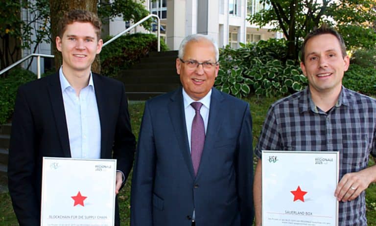 Hochsauerlandkreis. Landrat Dr. Karl Schneider hat die ersten Regionale-Sterne im Hochsauerlandkreis an zwei Projektträger überreicht. Maik Pannok vom Standort Meschede der Fachhochschule Südwestfalen für das Projekt „Blockchain für die Supply