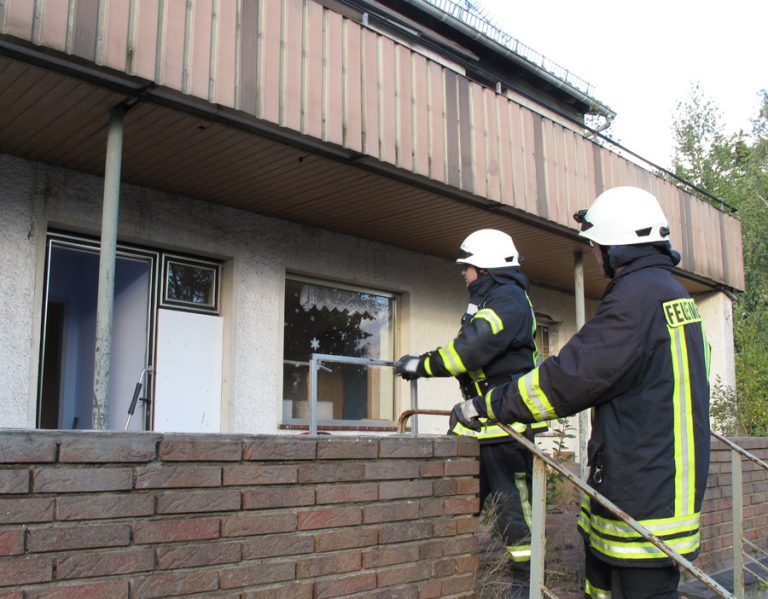 Ein Einsatztrupp des ersteintreffenden Fahrzeugs verschaffte sich unter schwerem Atemschutz Zugang zu dem Gebäude und drang in das erste Obergeschoss vor, das der Ursprungsort für die Rauchentwicklung war. Schnell
