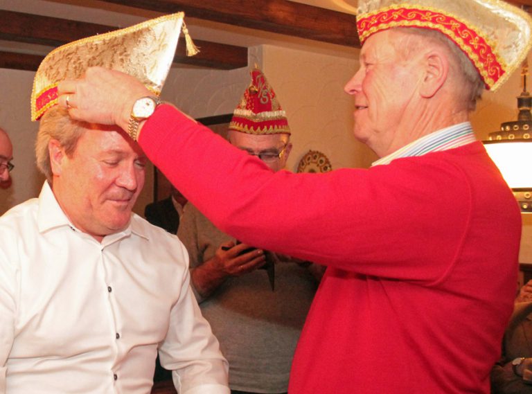 Traditionell starteten die Karnevalisten der Flotten Kugel in die heiße Zeit der Session mit dem Mütze-Messen beim neuen Ehrensenator. Rüdiger Laufmöller erwies sich gemeinsam mit Freundin Mirjam Schindler und den