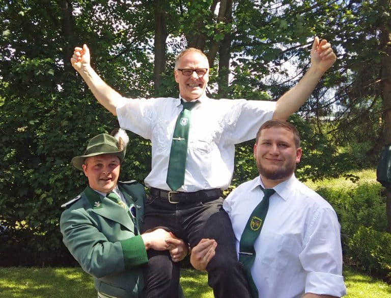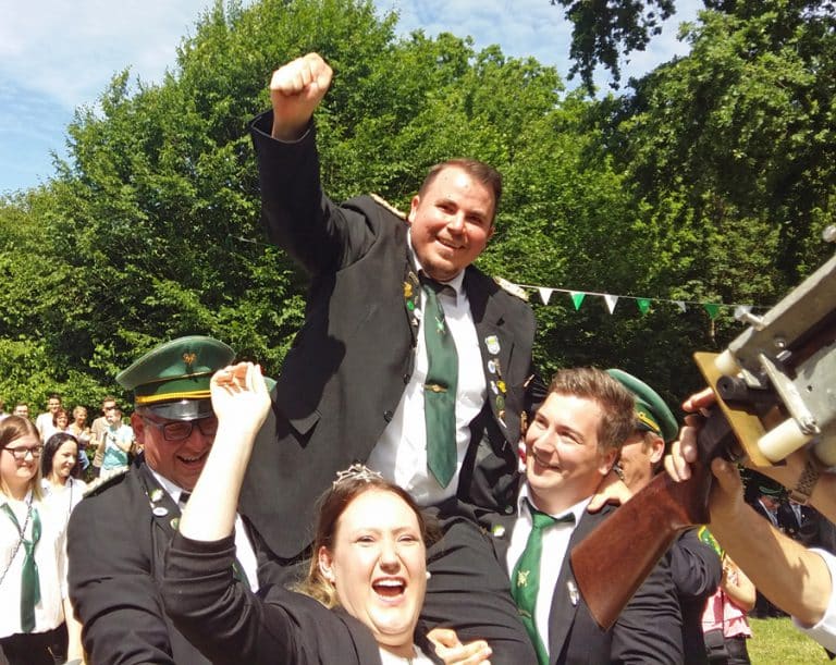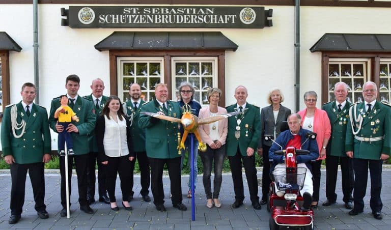 Oeventrop. Traditionell wird in Oeventrop am Mittwoch vor Fronleichnam der neue Königsvogel dem Vorstand und der Presse vorgestellt. Das jeweilige amtierende Königspaar lädt zu dieser kleinen Feier den Bruderschaftsvorstand, die