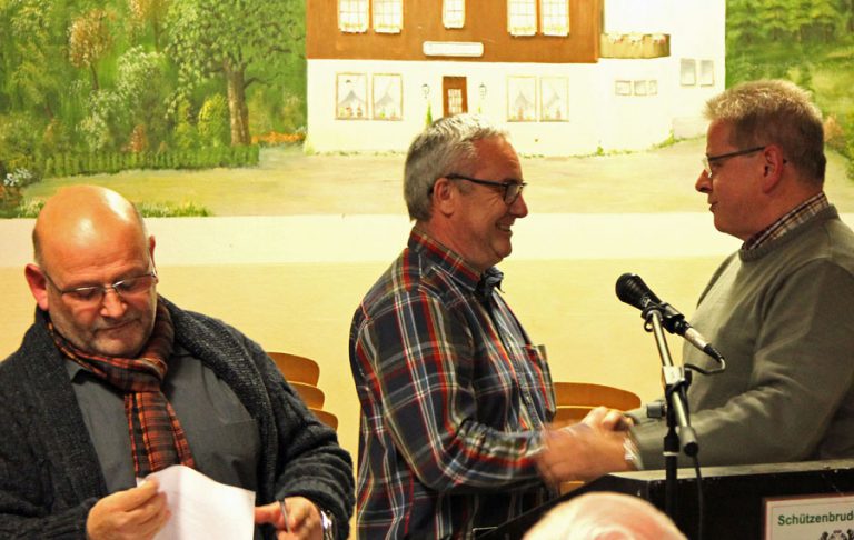 Stemel. Bei der Jahreshauptversammlung der Stemeler St. Hubertus-Bruderschaft wurden zwei Mitglieder aus dem Vorstand mit einem Präsent verabschiedet. Beisitzer Julian Schulze und der stellvertretende Schriftführer Alfred Will stellten ihre Ämter