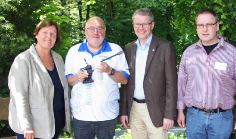 Rosemarie Goldner überbrachte die Grüße und Glückwünsche der Stadt Arnsberg. Sie betonte, wie wichtig die Jugendarbeit und die positiven Auswirkungen des Sports auf die Jugendlichen sind. Sportschießen sei erwiesenermaßen förderlich