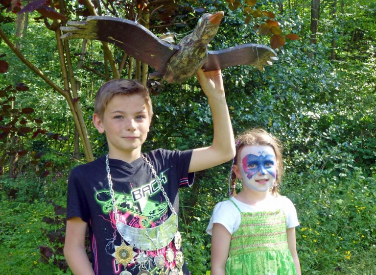 Zum Auftakt des Festes zog Waldlehrer Axel Blume vom SGV die Muffrikaner Kinder in seinen Bann. Er zeigte den Kindern allerlei Wissenswertes zum Thema Wald und Wasser. Dann ging es