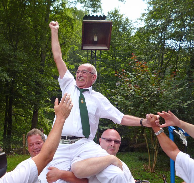 Der 66-Jährige hatte bereits etliche Versuche hinter sich. Auch diesmal machte er es spannend, lieferte sich mit seinen Mitbewerbern Bernd Dölle, der bereits vor 25 Jahren Muffrikaner König war, und
