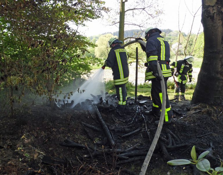 Die Einsatzkräfte der Feuerwehr bauten daher umgehend eine Wasserversorgung auf und setzten zwei C‑Rohre zur Brandbekämpfung ein, um Schlimmeres zu verhindern. Der Brand konnte so innerhalb kürzester Zeit unter