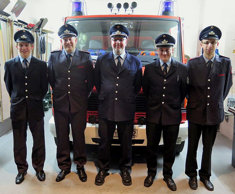 Mein­ken­bracht. Im Rah­men der Jah­res­haupt­dienst­be­spre­chung der Lösch­grup­pe Mein­ken­bracht unter der Lei­tung von Lösch­grup­pen­füh­rer Den­nis Schrö­der wur­de Domi­nik Schel­le zum Ober­feu­er­wehr­mann beför­dert. Der bis­he­ri­ge Kas­sie­rer Frank Schmidt schied nach neun­jäh­ri­ger Amts­zeit auf­grund seines