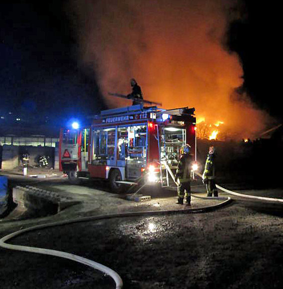 Sundern. Gegen 21.30 Uhr am Mittwoch abend wurde der Feuerwehr-Leitstelle ein Feuerschein im Lockweg gemeldet. Aus bisher unbekannter Ursache war bei einem Entsorungsbetrieb ein Zwischenlager für die Gelben Säcke in