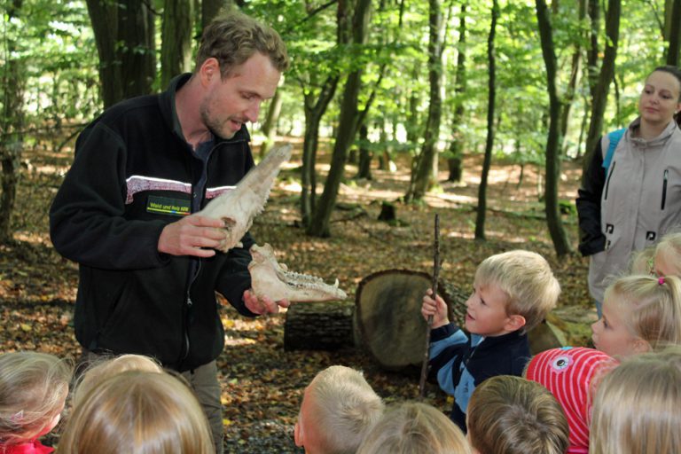 Westenfeld. Fichte, Buche und Eiche – wie sieht die Rinde aus, wie fühlt sie sich an? Welche Früchte trägt welcher Baum? Und wie sehen die Blätter aus? Das alles erforschten