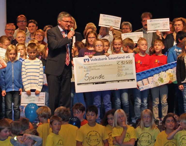 Arnsberg/Meschede/Olsberg/Sundern. Alle Grundschulen in ihrem Geschäftsgebiet hatte die Volksbank Sauerland eG jetzt zu einem ganz besonderen Anlass in die Mescheder Stadthalle eingeladen. Unter dem Motto „Nutzen stiften – In der
