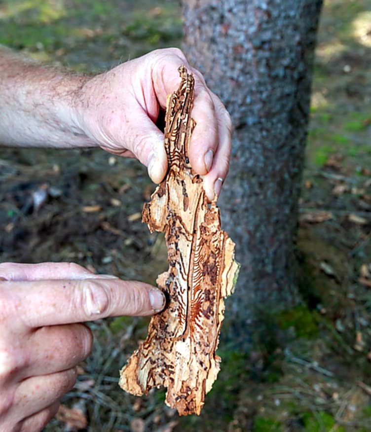 - Borkenkäfer bohren sich durch die Rinde von Fichte und Co. und legen dort Brutgänge für ihre Nachkommen an.