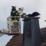Über die Drehleiter wurde der Schornstein mit dem Kaminkehrwerkzeug von den Rußablagerungen und Glutnestern befreit. Einsatzkräfte der Feuerwehr kontrollierten das Wohnhaus während der eingeleiteten Maßnahmen regelmäßig auf eine eventuelle Brandausbreitung. Nach rund einer Stunde war der Kamin vollständig gereinigt und letzte Glutnester waren beseitigt. Die Einsatzstelle wurde vom zuständigen Schornsteinfeger abgenommen.