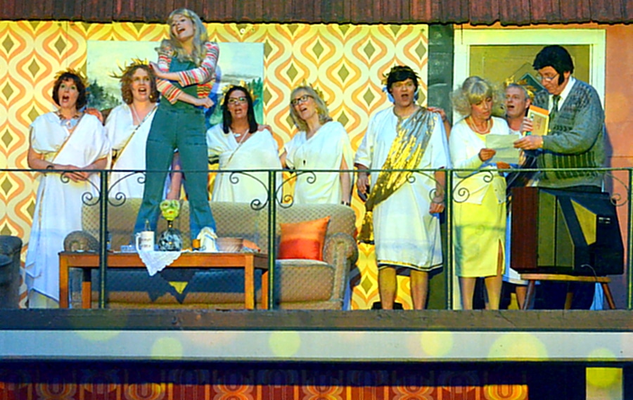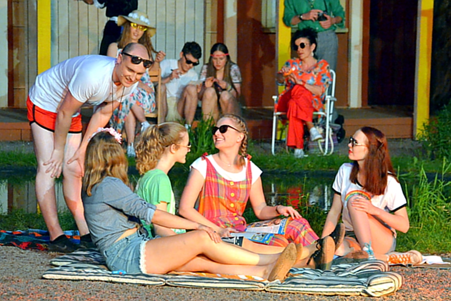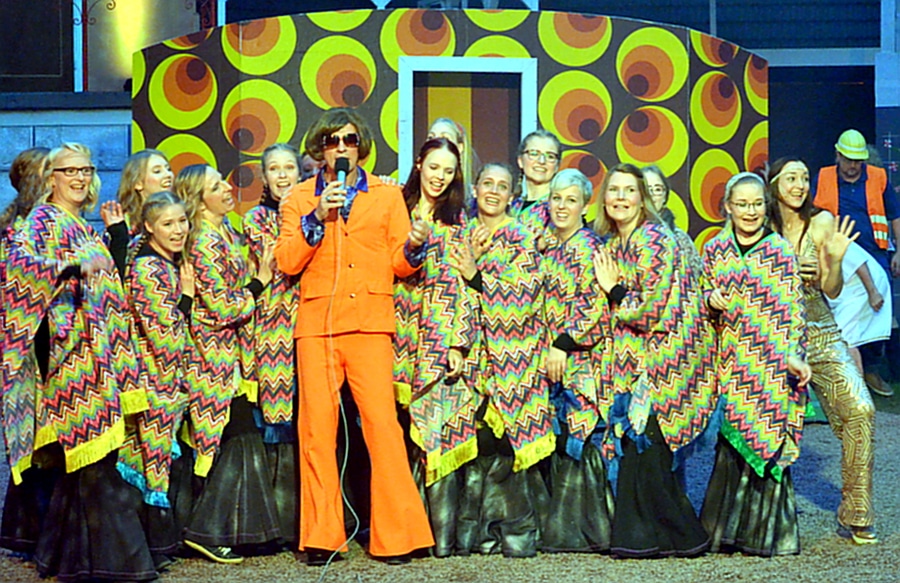 Zur Premiere von „Schlager lügen nicht!“ wurde auf der Tribüne in Herdringen gefeiert und gesungen! Mit stehenden Ovationen und dem Wunsch nach einer Zugabe ließen sich die Darsteller des Erwachsenenstücks im Anschluss die Aufführung minutenlang von den Gästen feiern. Besucher an der Freilichtbühne Herdringen können sich seit Samstag über eine gelungene Mischung aus Story und Gesang freuen, die keinen Zuschauer ruhig in den Sitzbänken hält: Das Mitsingen und Mitfeiern ist nicht nur erlaubt, sondern ausdrücklich erwünscht! Mit „Schlager lügen nicht!“ lädt die Freilichtbühne zu einer riesigen Party ein, die nach der Premiere bis zum 8. September noch insgesamt 16 Mal in Herdringen zu sehen ist.