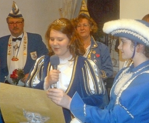 Als Stellvertreter des Rathauschefs entschuldigte Bannes den Bürgermeister, den Brüssel gerufen habe. Für alle, die einen Vogel erwartet hatten, hatte sich Bannes sich entsprechend kostümiert, eine Hühnermütze aufgesetzt und