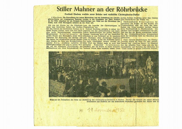 Hachen. Nachdem im Februar über den Zustand der Christophorus-Statue in Hachen berichtet wurde, haben sich bezüglich des Erstellers neue Erkenntnisse ergeben. Bildhauermeister Thomas Greitemann aus Seidfeld machte darauf aufmerksam, dass