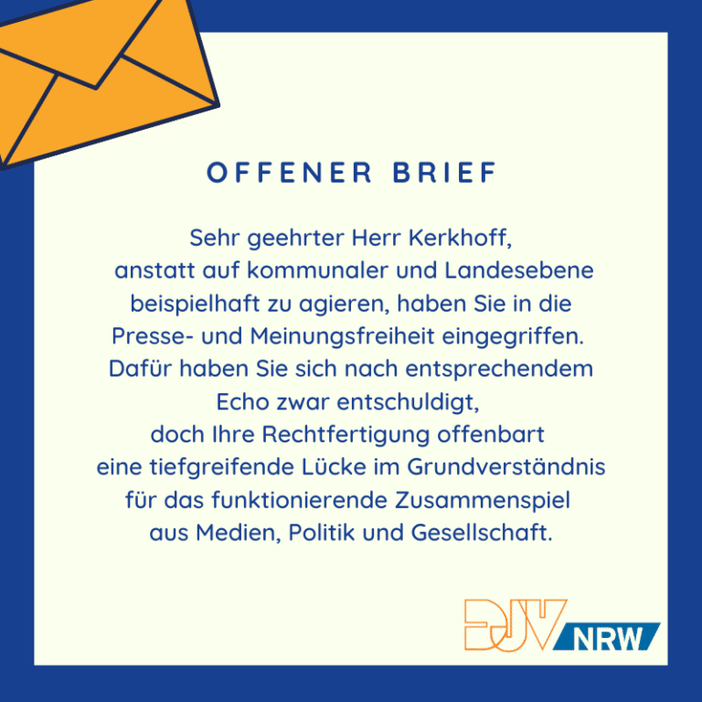 Hochsauerlandkreis/ Düsseldorf. Mit einem offenen Brief hat sich der Deutsche Journalisten-Verband (DJV-NRW) am Donnerstag an den Vorsitzenden der CDU im Hochsauerlandkreis, Matthias Kerkhoff, gewandt. Kerkhoff ist Mitglied des Landtags von
