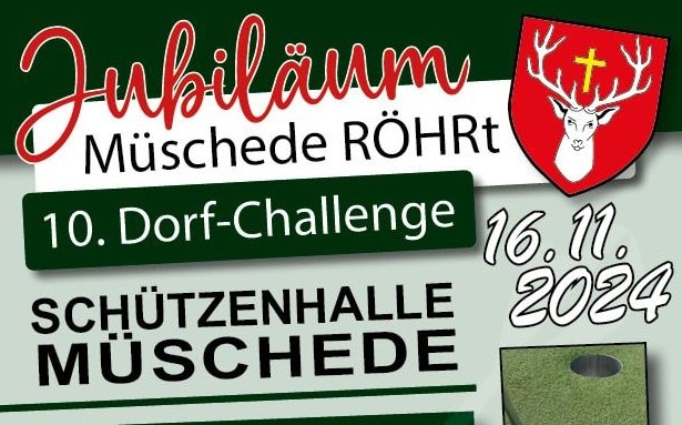 Arnsberg/Müschede. Bereits zum 10. Male veranstalten die Müscheder St. Hubertus-Schützen am 16.11.2024 die „Dorf-Challenge“ in der Schützenhalle des Eulendorfs und begehen damit ein kleines Jubiläum. Was vor einigen Jahren als Licht
