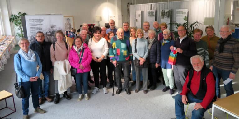 Sundern/Arnsberg. Zur Besichtigung der Ausstellung „Einige waren Nachbarn“ in der Stadtbibliothek Neheim trafen sich jetzt fast dreißig interessierte Rote und bunte Socken, um sich zusammen mit dem Arnsberger Geschichtsfachmann Peter
