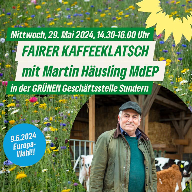 Sundern. Am Mittwoch, den 29. Mai 2024 kommt Martin Häusling, Europaabgeordneten der GRÜNEN, zum Austausch nach Sundern. Im anschließenden Austausch haben alle Interessierten die Möglichkeit, agrar- und waldpolitische Themen mit