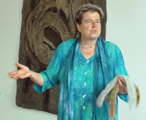 Im Workshop vermittelt Filzkünstlerin Beate Bossert Anfängern wie Fortgeschrittenen Grundlegendes über verschiedene Wollqualitäten und Schnittberechnung für eine passgerechte und gute handwerkliche Fertigung. Die praktische Anleitung und Unterstützung beginnt beim Maßnehmen