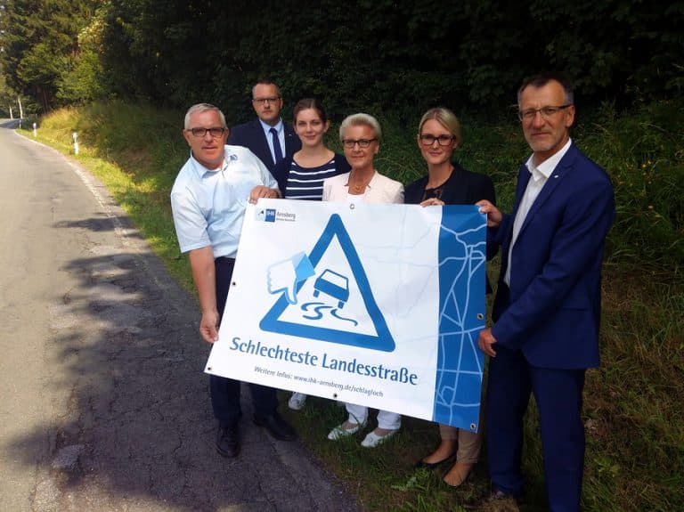 „Das ist ja lebensgefährlich hier!“, sagte IHK-Hauptgeschäftsführerin Ilona Lange, als sie sich an der Bushaltestelle Schwarz in der Flamke eine Weile den auf der kurvigen und holprigen L 685 vorbeibrausenden