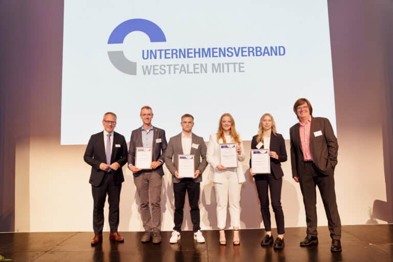 Hamm/Sundern. Im Rahmen seiner jährlichen Vortragsveranstaltung verlieh der Unternehmensverband Westfalen-Mitte wieder insgesamt vier Förderpreise für herausragende Abschlussarbeiten mit besonderem Praxisbezug an Absolventinnen und Absolventen der Fachhochschule Südwestfalen und der Hochschule