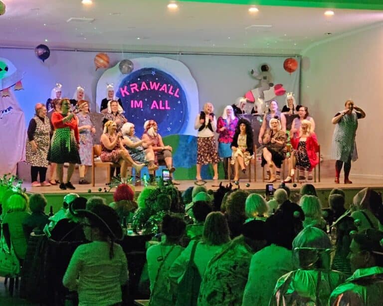 Sundern/Endorf. Die diesjährige Frauensitzung der kfd Endorf stand unter dem Motto „Krawall im All“ und zog Frauen aus dem gesamten Stadtgebiet an. Begeistert feuerte das Publikum die „Flotte Kugel“, die „Rönkhauser