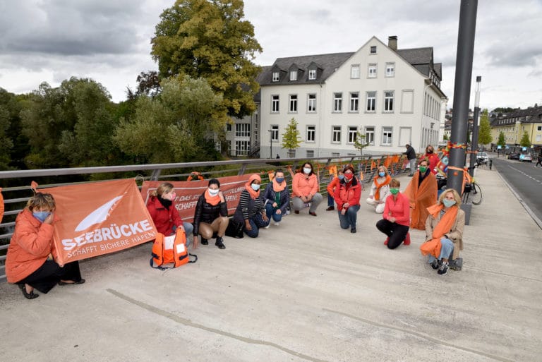 Arnsberg. Am vergangen Freitag haben Vertreter und Vertreterinnen der Seebrücke Hochsauerland, des Caritasverbandes Arnsberg-Sundern und die Pfadfinder des Stammes Liebfrauen die Aktion „Klosterbrücke zur Seebrücke machen – für eine menschengerechtere Geflüchtetenpolitik