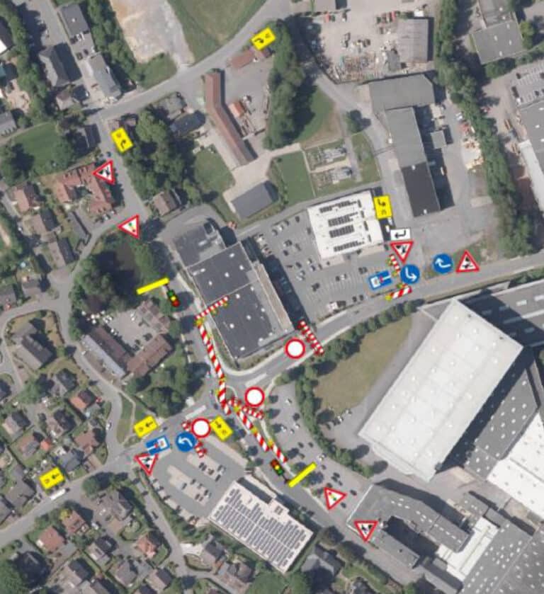 Sundern. Im Zeitraum vom 11.04. bis 14.04.2023 wird der Kreisverkehr an der Straße Röhre inklusive des umliegenden Straßenbegleitgrünes hergerichtet. Im oben genannten Zeitraum von jeweils ca. 6:3o Uhr bis ca.
