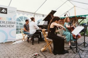 Sundern. Petrus hatte ein Einsehen: das Unwetter der vorhergehenden Nacht flaute rechtzeitig ab; größere Schäden am Konzertort, dem Garten der Familie Müller in Tiefenhagen, waren nicht entstanden. So konnte die