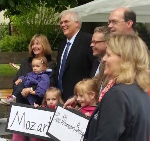 Hüsten. Am Fronleichnamstag hat Bürgermeister Hans-Josef Vogel die vom Rat beschlossene Umbenennung der Karl-Wagenfeld-Straße und des Maria-Kahle-Wegs in Clara-Schumann-Straße und Mozartweg offiziell vorgenommen. Treffpunkt war die Einmündung des neuen Mozartwegs