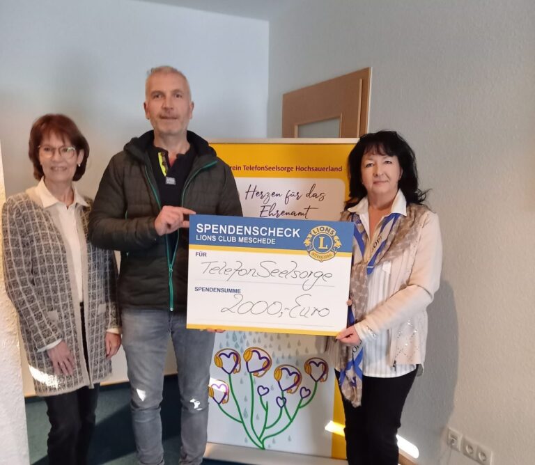 Unterstützung für die Telefonseelsorge: Lions Club Meschede spendet 2.000 Euro