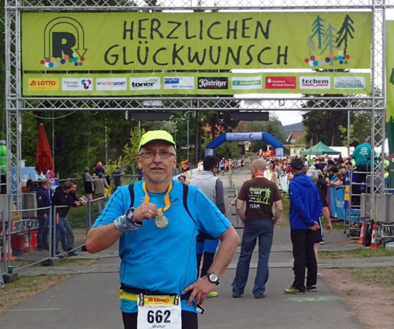 Walter Blume hatte sich die Königsdisziplin ausgewählt: den 72,7 km langen Supermarathon von Eisenach über Oberhof nach Schmiedefeld. Nach 10.25 Stunden kam der Bergheimer erschöpft, aber überglücklich ins Ziel. Auch