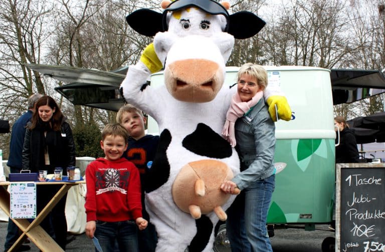 Stockum. Bewegungsspaß mit NRW-Milchmaskottchen Lotte macht gute Laune und ist gesund. Die Sympathieträgerin mit der blonden Tolle und der coolen Sonnenbrille besuchte jetzt die Schülerinnen und Schüler der Sebastianschule in
