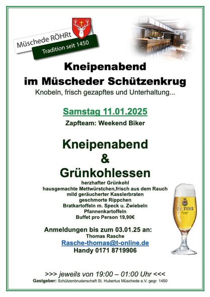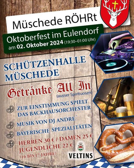 Arnsberg/Müschede. Am Donnerstag, 2. Oktober 2025, heißt es ab 19.30 Uhr wieder „O’zapft is!“ in der Müscheder Schützenhalle. Die Schützenbruderschaft St. Hubertus lädt im Rahmen ihres Jubiläumsjahres zum traditionellen Oktoberfest