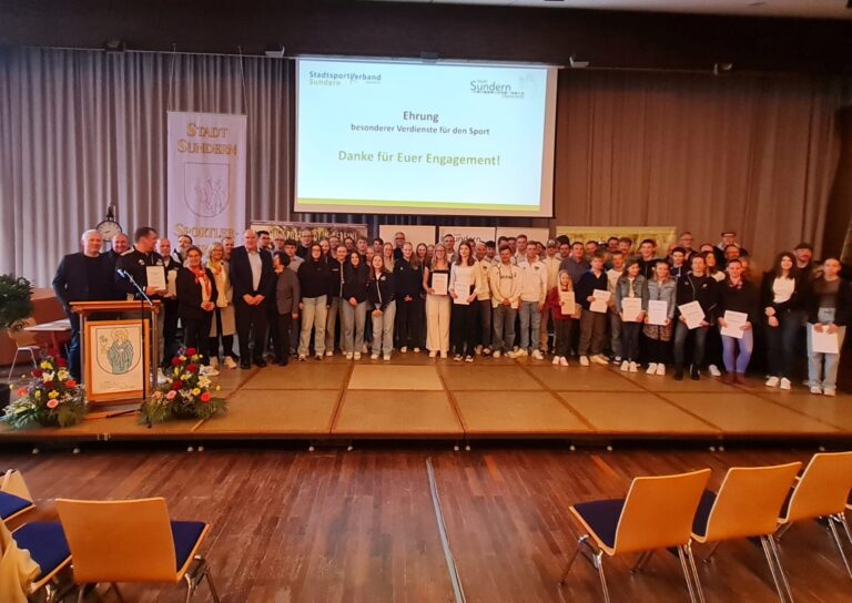 Sun­dern. Die bes­ten Sport­le­rin­nen und Sport­ler Sun­derns wur­den am Don­ners­tag, 25.04.2024 in der Städ­ti­schen Real­schu­le vom Stadt­sport­ver­band Sun­dern und der Stadt Sun­dern für ihre her­aus­ra­gen­de sport­li­che Leis­tung geehrt. Aus­zeich­nun­gen wurden