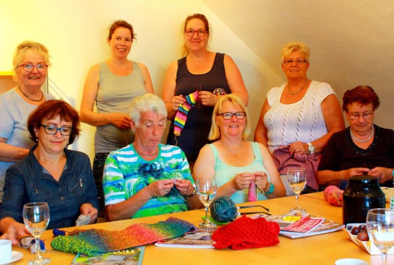 Nach zwölf Jahren hat sich ein „fester Kern“ strickender Frauen aus Sundern und den Orten ringsum gebildet, was nicht bedeutet, dass die Frauen sich auf diesen „Kern“ beschränken. „Immer sind