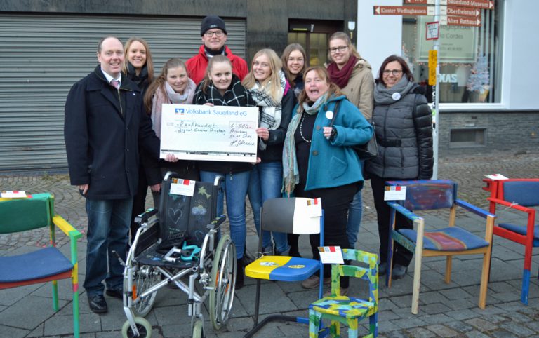 Die Stühle werden nun in den kommenden Tagen den Stuhlpaten übergeben, die Volksbank Sauerland eG, die Sparkasse Arnsberg-Sundern, die Bezirksregierung Arnsberg und die Polizei, das Autohaus Rosenthal und Rustemeier, das