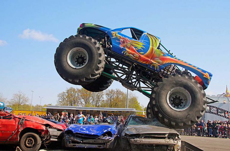 Motorräder, Quads, Autos und die bekannten Monster-Trucks mit ihren riesigen Reifen zählen zu den Requisiten, die Gino Winter und seine Stuntmen mitbringen. Motorrad-Weitsprünge, provozierten Autoüberschläge, spektakuläre Auto-Zusammenstöße und Quad-Freestyle begeistern
