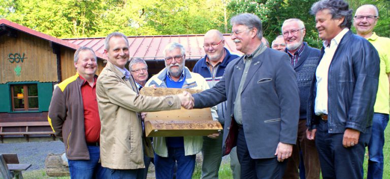 Im Jahre 2002 erklärte sich dann das Mitglied der SGV-Abteilung Arnsberg, Heiko Balkenohl bereit, ein vom Vorstand erdachtes „SGV-Schnadeholz“ jährlich kunstvoll mit den Emblemen des jeweils ausrichtenden Vereins zu verzieren.