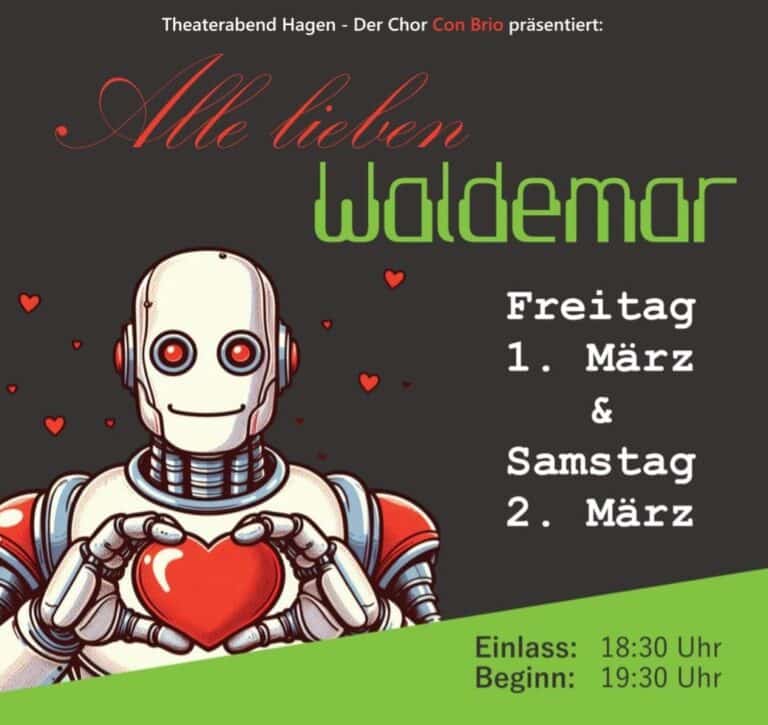 Sundern/Hagen. Am 1. und 2. März führt die Theatergruppe des Chors Con Brio Hagen das Theaterstück „Alle lieben Waldemar“ in der Schützenhalle Sundern-Hagen auf. Die Komödie von Bernd Spehling thematisiert