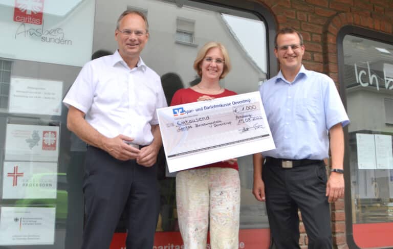 Arnsberg/Oeventrop. Die SpaDaKa Oeventrop, eine Zweigniederlassung der Volksbank im Hochsauerland eG, unterstützt die Tu-Was-Gutes Challenge für die Anlaufstelle Oeventrop mit einer Spende von 1.000 Euro. Mario Tiemann, Generalbevollmächtigter der SpaDaKa Oeventrop,
