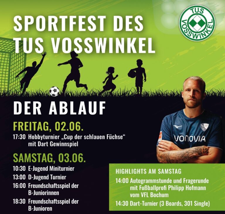 Arnsberg/Voßwinkel. Am 23. und 24. August 2025 findet wieder das traditionelle Sportfest des TuS Voßwinkel statt – zwei Tage voller Sport, Spiel, Spannung und Begeisterung mit einem tollen Rahmenprogramm. Den Samstagmorgen