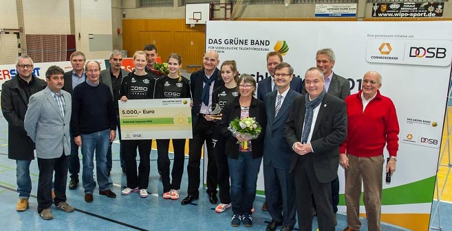 Sundern. Vor dem Punktespiel in der 2.Volleyball-Bundesliga übergab am Samstag der Filialleiter der Commerzbank Sundern, Marc-Oliver Stiewe „Das Grüne Band“ und einen Scheck über 5000 Euro an die Vorsitzende des